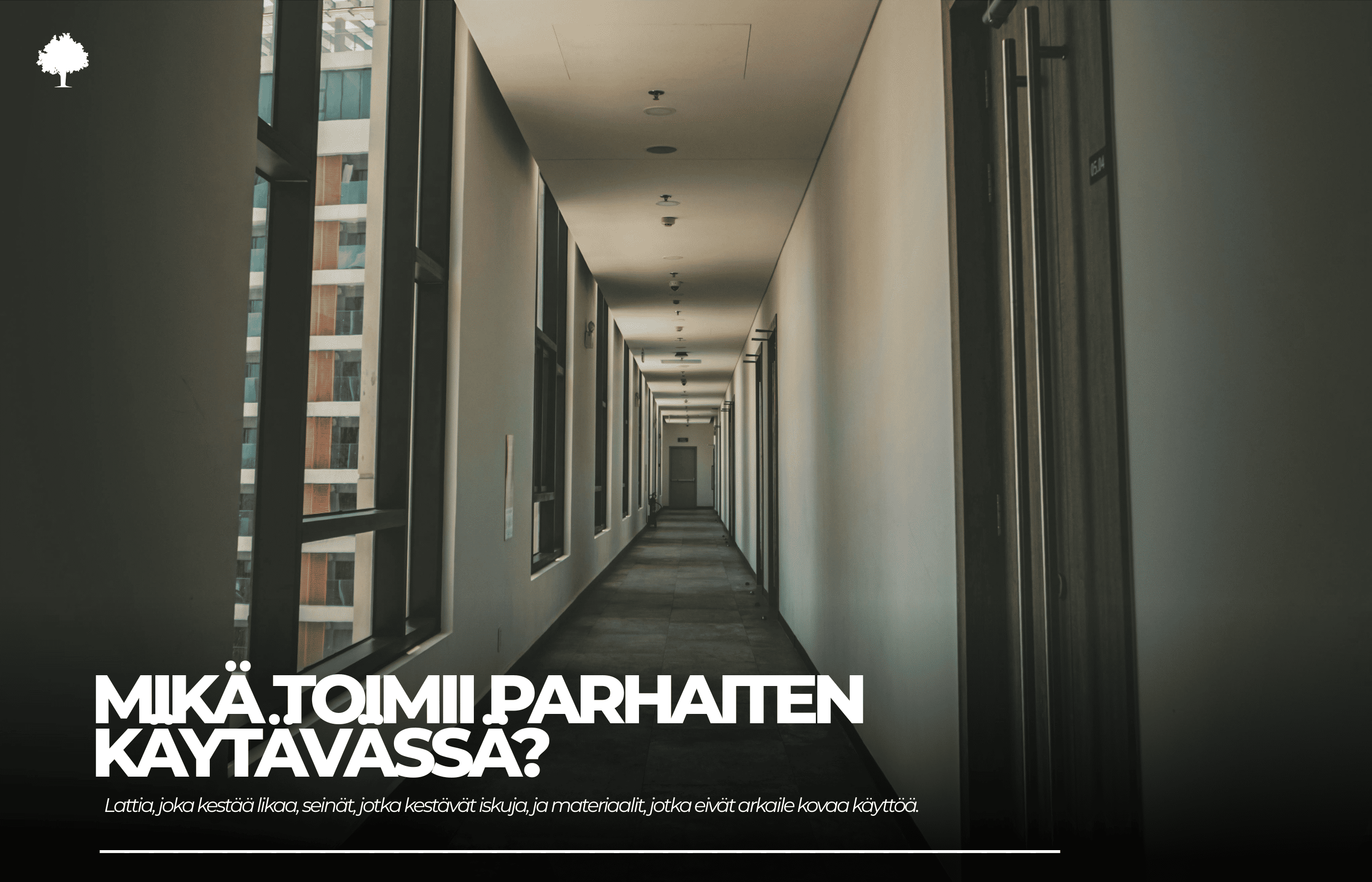 Likaantuminen käytävässä on väistämätöntä, mutta sen ei tarvitse olla ongelma. Materiaalien tulisi mahdollistaa tahrojen helppo poistaminen ilman voimakkaiden kemikaalien käyttöä.