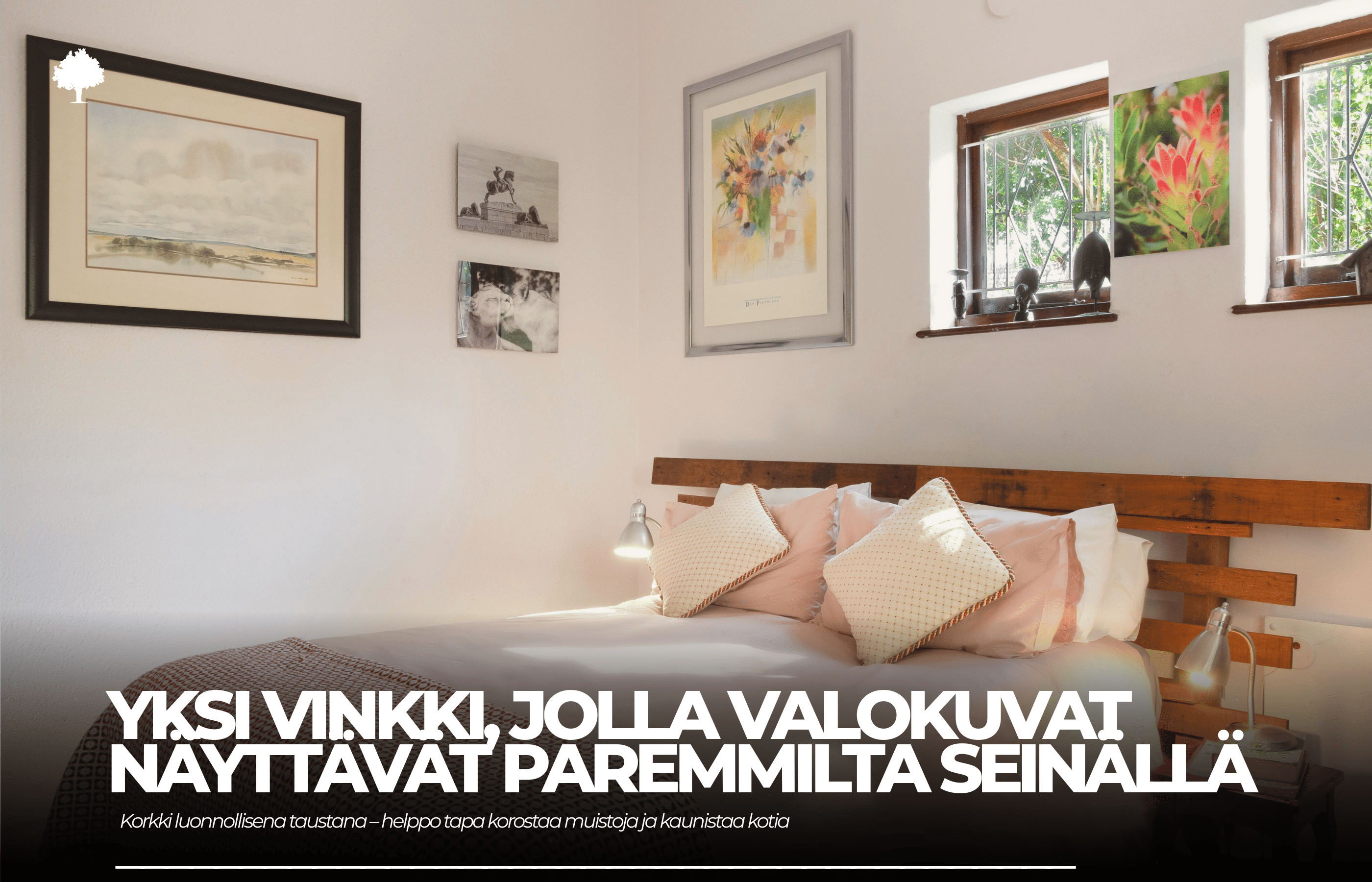 Jos ohuet kehykset ovat kuin hienovarainen taidegalleria, niin korkkitaulu on kuin matkapäiväkirja levitettynä seinälle. Luonnonkorkki on materiaali, joka tuo heti mieleen rennon tunnelman, seikkailun ja spontaaniuden. Siinä ei ole jäykkyyttä – vain vapautta, luovuutta ja paljon tilaa improvisaatiolle.