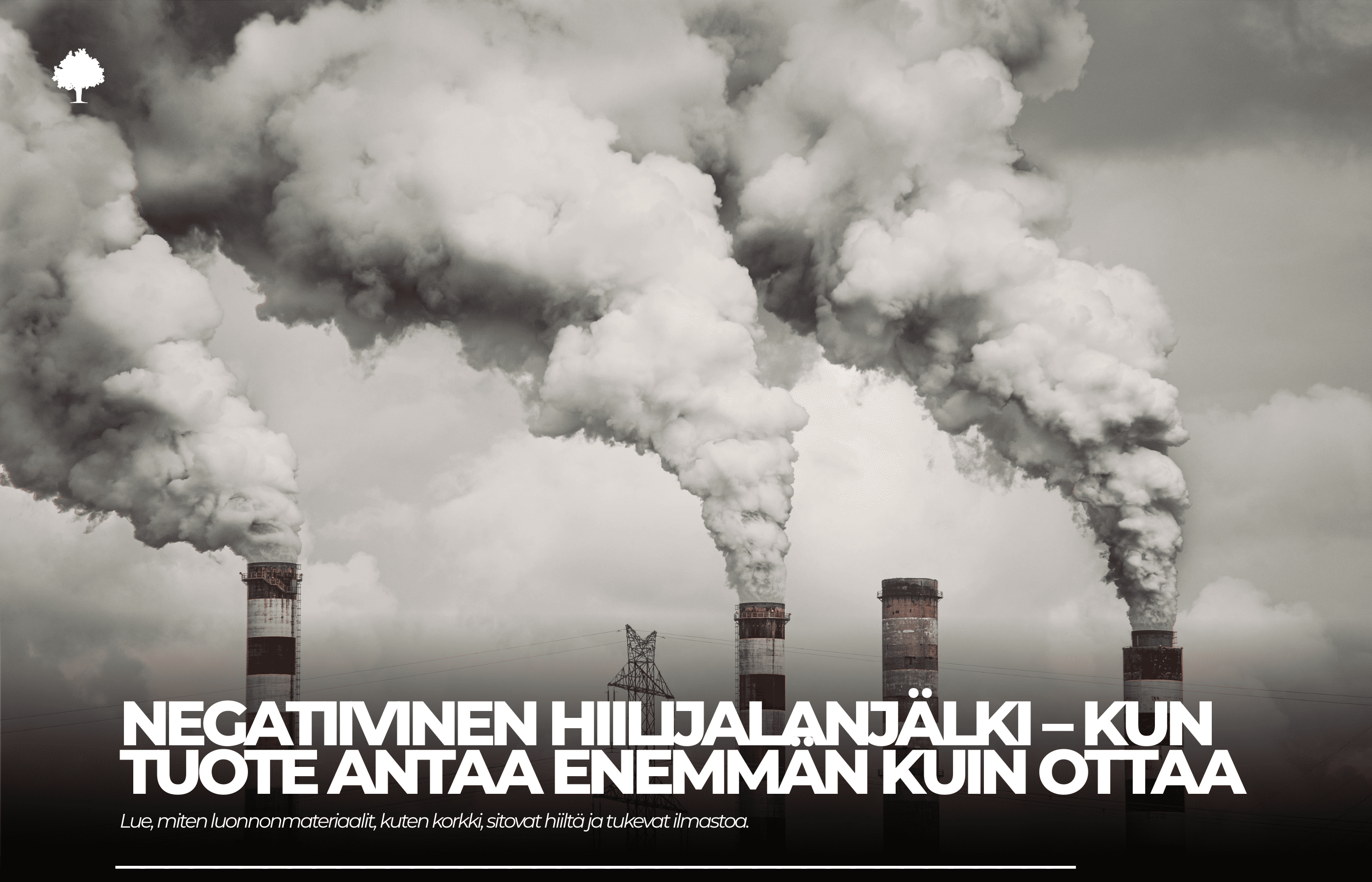 Yksi parhaista esimerkeistä materiaalista, jolla on negatiivinen hiilijalanjälki, on luonnonkorkki. Vaikka se liitetään useimmiten pullonsulkijoihin, sen ympäristöominaisuudet tekevät siitä yhä arvostetumman rakennusalalla, muotoilussa ja teollisuudessa. Luonnonkorkki on täysin luonnollinen raaka-aine, joka saadaan korkkitammen (Quercus suber) kuoresta; puu kasvaa pääasiassa Portugalissa, Espanjassa ja Välimeren maissa.